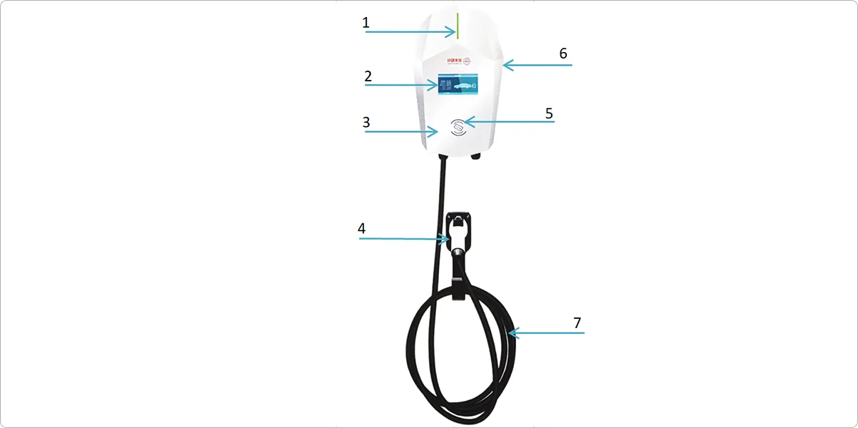 4. 充電ガン: GB/T 20234.2 規格、長さ 5 メートルの充電ケーブルに接続。